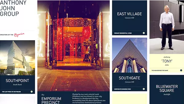 Anthony John Group使用方塊來展示他們創作的各個項目,還有關鍵的公司信息,比如“幕后團隊”。主頁的規劃與構建很棒,但也結合緊密。很明顯,他們致力于創造像這個頁面一樣優雅的高端建筑設計,如果沒有這些方塊,可達不到這樣的效果。