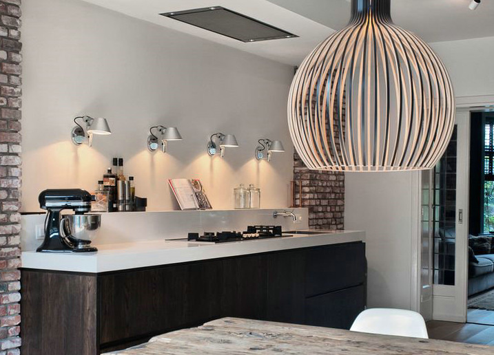 自然、粗野的裸磚常用于室外,但在工業風中,常把這一元素運用到室內,老舊卻摩登感十足。