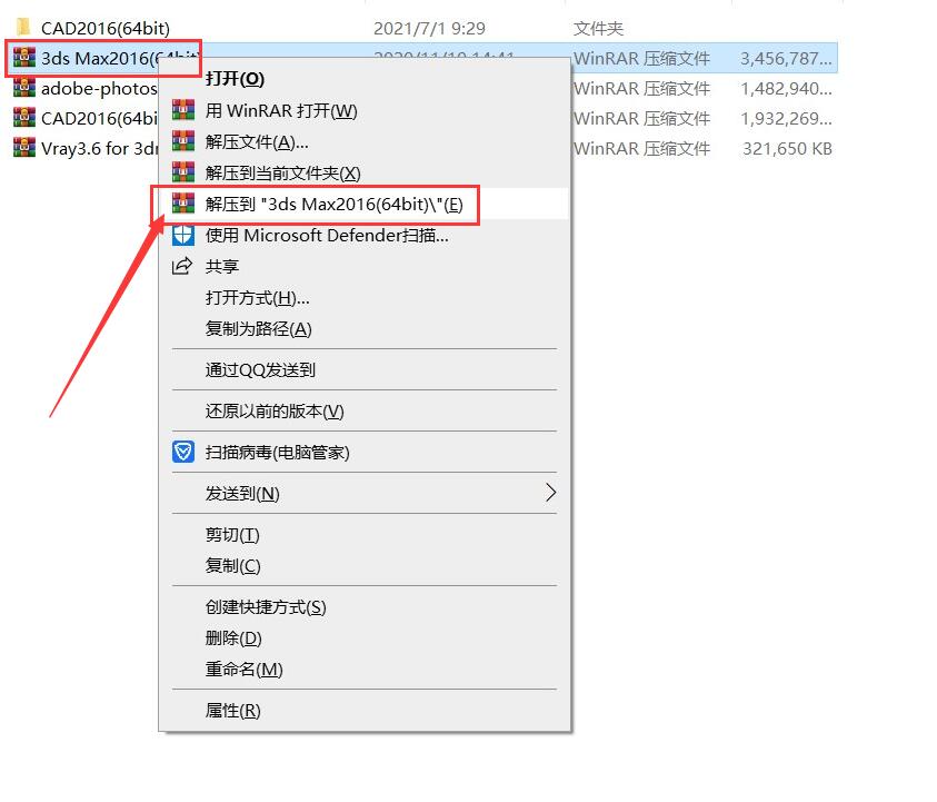1.鼠標右擊【3ds Max2016(64bit)】壓縮包選擇【解壓到 3ds Max2016(64bit)】。
