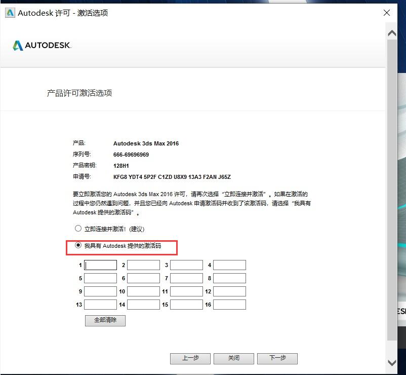 17.選擇【我具有Autodesk提供的激活碼】(不要關閉此界面)。