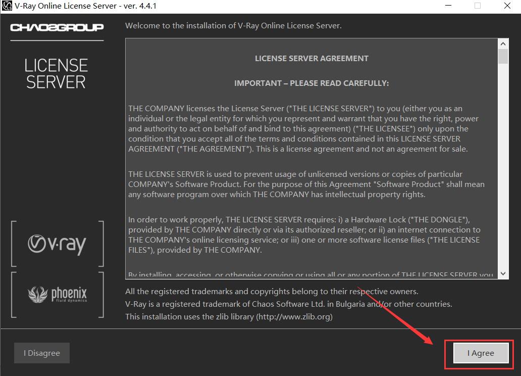 5.安裝完成后是vray3.6的用戶使用協議,點擊我同意。