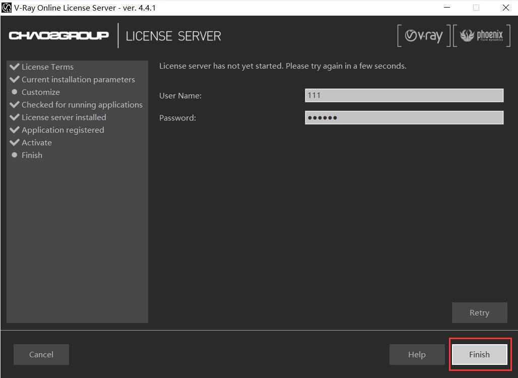 9.vray3.6配置完成之后點擊finish。