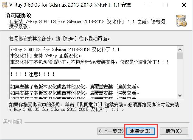 19.vray3.6的許可證協議,點擊【我接受】。